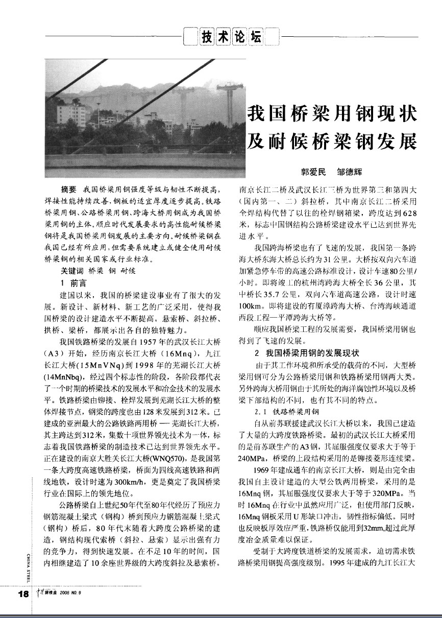 我國橋梁用鋼現(xiàn)狀及耐候橋梁鋼發(fā)展