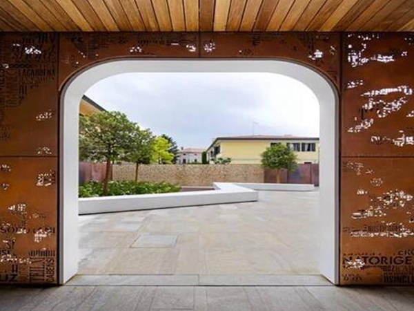 耐候鋼能夠形成一種銹紅色的保護(hù)膜來提升提使用壽命,同時(shí)在外在景觀表面上增加了粗糙感,使整體更加富有歷史感以及質(zhì)感。另外耐候鋼表層的紅繡氧化膜能夠快速的生成并且厚度均勻,能夠保證耐候鋼各個(gè)方位收到的保護(hù)力度一致。