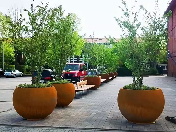 常常能在自然景觀中看到這樣一種學(xué)習(xí)材料,表面是一層銹紅色文化物質(zhì)摸上去十分粗糙,質(zhì)感十分特殊。它看著并不突兀,甚至與植物wanmei結(jié)合。在粗糙與細(xì)膩,冷與暖,軟與硬的對(duì)比結(jié)合中,凝聚成了豐富的設(shè)計(jì)語(yǔ)境。它的名字叫做耐候鋼。